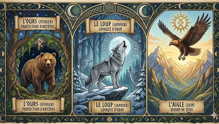#Loup #Ours #Aigle #MythologieNordique #Sagesse #AnimalTotem #Instinct #ForceInterieure #Artémis #Odin #Zeus #Jupiter #Soleil #Lune #Ciel #Terre